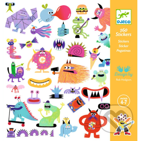 Samolepky s motívom komických príšeriek: strapatých, zubatých, slizských, na kolobežke alebo ukryté v zmrzline. Potešia aj samostatné prvky ako zuby a oči, ktoré sa dajú ľubovoľne kombinovať. Samolepky sú použiteľné samostatne alebo ako doplnok kresbičiek. Sú použiteľné jednorazovo, nie sú odlepiteľné. Sada je vhodná ako malý darček.